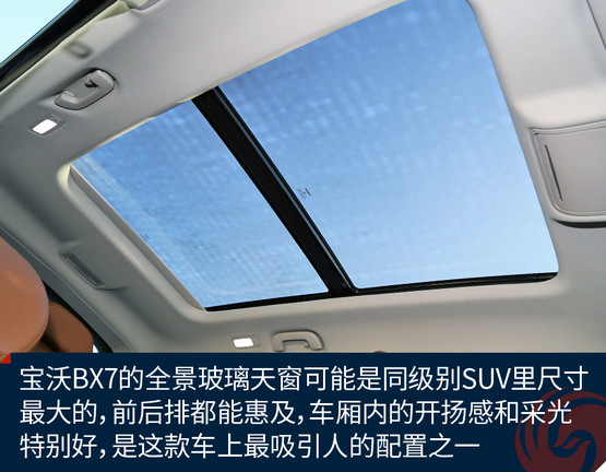 BX7是一款同時(shí)擁有5座、6座和7座布局的SUV車型,這款長(zhǎng)度超過(guò)4.7米的SUV的確有能力在行李廂布置第三排座椅。不過(guò)這次我們?cè)囻{的車型仍是五座配置,對(duì)于這樣尺寸級(jí)別的SUV前后排空間自然都不是問(wèn)題,相當(dāng)寬闊而且乘坐感非常舒服。旗艦版的配置亦相當(dāng)豐富,三溫區(qū)自動(dòng)空調(diào)和前后排座椅加熱,以及同級(jí)別堪稱無(wú)敵的超大全景天窗,在配置方面很有吸引力,而再一次綜合其價(jià)格來(lái)看,明顯優(yōu)于同級(jí)別平均水平的標(biāo)準(zhǔn)配置再一次詮釋了“觸手可及的豪華”這一產(chǎn)品理念。