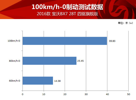 加速過(guò)后就要減速,寶沃BX7的制動(dòng)系統(tǒng)在測(cè)試中經(jīng)受住考驗(yàn),不到39米的成績(jī)對(duì)于一臺(tái)SUV而言已經(jīng)算是很不錯(cuò),而且多次測(cè)試并未出現(xiàn)制動(dòng)力有衰減的現(xiàn)象。