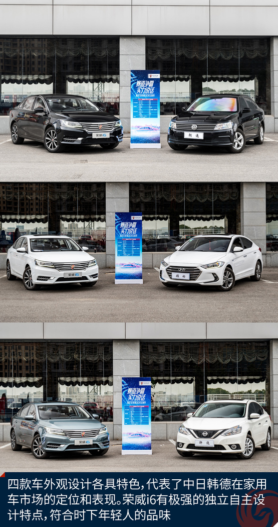 鳳凰汽車·搶先試駕?榮威i6可以說打響了互聯(lián)網(wǎng)家轎的第一槍,它是繼RX5之后,榮威旗下的第二款重量級(jí)產(chǎn)品,延續(xù)了榮威RX5家族律動(dòng)美學(xué)的優(yōu)良基因。上市十天訂單便突破萬(wàn)輛大關(guān),是一款非常有潛力挑戰(zhàn)合資競(jìng)品的車型。但是光說不練,假把勢(shì)。今天我們就在江蘇萬(wàn)馳的賽道場(chǎng)地內(nèi),特意選取了同級(jí)合資老炮軒逸16款1.6LXV CVT智享版、朗逸17款1.6L自動(dòng)舒適版、領(lǐng)動(dòng)?16款 1.4T 雙離合炫動(dòng)?精英型,和榮威i6 20T互聯(lián)網(wǎng)智尊版做個(gè)對(duì)比,看看這些銷量過萬(wàn)的合資家轎與新晉的小鮮肉榮威i6到底誰(shuí)更勝一籌?