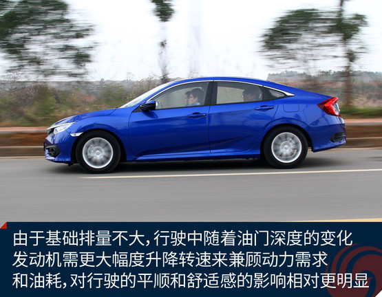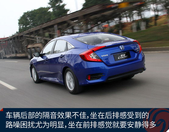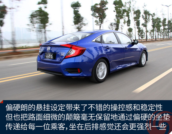 思域的定位一直偏向運動,這一代車型自然不會放棄這一特色,底盤的扎實感、懸掛偏硬朗的設(shè)定都營造了同級別里相對出色的操控感受。不過懸掛系統(tǒng)在韌性方面相對薄弱,路感太強烈,鋪裝路面上細微的不平整所帶來的振動也比較清晰地傳遞到車內(nèi)。座椅的靠背包裹感還不錯,填充也比較得體,很舒服,但坐墊偏硬,因此行駛中車輛整體對振動的抑制能力欠佳,很大程度上影響了舒適性。