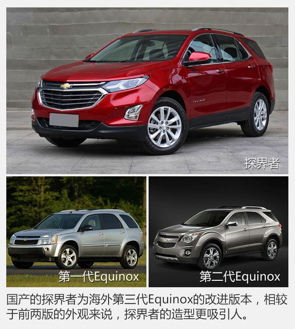 探界者其實(shí)并非科帕奇的換代車型,而是完完全全的一款全新車型,國產(chǎn)探界者也并不是第一次出現(xiàn)在世人面前;探界者早在北美市場(chǎng)供應(yīng),名為Equinox的它是通用汽車在北美市場(chǎng)最受歡迎的車型之一。這次引入國內(nèi)的探界者已經(jīng)是它的第三代車型,而第二代在整個(gè)北美市場(chǎng)位列全部車型銷量榜的第15位,可見其可靠的實(shí)用性和較高的性價(jià)比受到了多大的認(rèn)可。