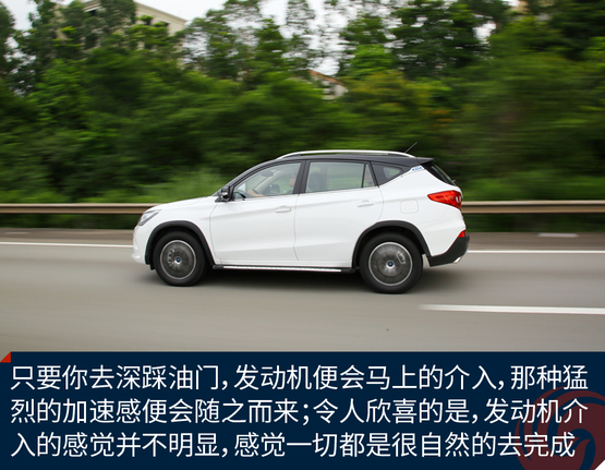 ????????在混合動(dòng)力模式下,將駕駛模式調(diào)整為SPORT模式,由于起步階段是電機(jī)發(fā)力,因此并不像汽油車那樣靠吊轉(zhuǎn)速來獲得最大的扭矩。此時(shí),你只需將油門踩到底,任由宋DM的電機(jī)和發(fā)動(dòng)機(jī)發(fā)力就行,而大扭矩帶來的直接體驗(yàn)就是,身體像是被摁壓在座椅上,任由車輛來讓我體驗(yàn)G值給身體所帶來的快感,而這種“變態(tài)”的加速感體驗(yàn)確實(shí)是非常的過癮;可當(dāng)你還在意猶未盡地回味這速度高潮的時(shí)候,不知不覺就到了該踩剎車的節(jié)點(diǎn)。