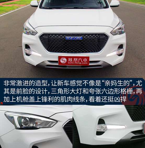 ????????前面曾說,M6的樣子是最不哈弗的,主要是它采用了全新的外觀設(shè)計風(fēng)格,前臉以大量平直的線條勾勒出凌厲的造型。六邊形網(wǎng)狀前進(jìn)氣格柵搭配棱角分明的前大燈組,特意把它年輕、時尚的一面體現(xiàn)的很明顯。此外,大燈組下方的進(jìn)氣口以及大尺寸的LED日間行車燈設(shè)計給整車起到了畫龍點睛的作用。