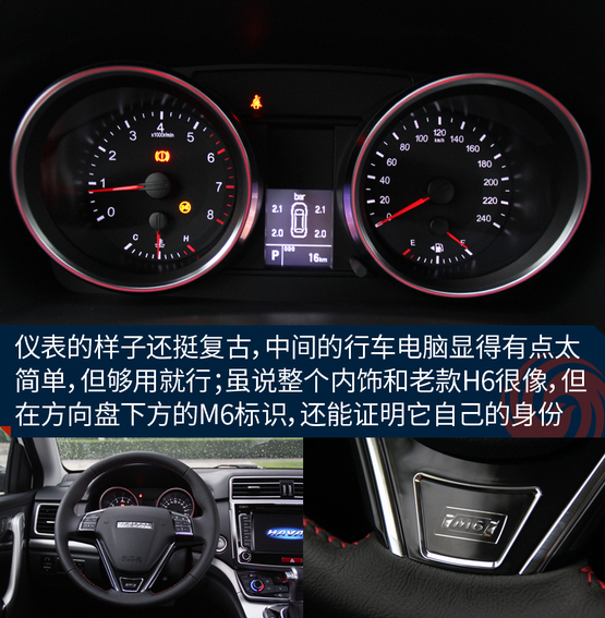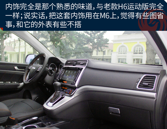????????車上的機(jī)械液壓助力轉(zhuǎn)向的力度有點沉,這點和老款H6特別的相似,長時間在低速行駛或者移庫挪車的時候挺廢胳膊,大老爺們長時間開都覺得酸,更何況瘦小的小女孩呢!所以從這點看出,M6會從配置以及更低的價格來吸引消費(fèi)者,至于想這些其他的問題,大伙就別太吹毛求疵了,畢竟魚和熊掌不可兼得。