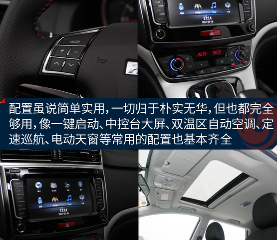 ????????內(nèi)飾相對的看著沒那么大的驚喜,主要是它與老款哈弗H6車型的樣子基本保持一致,包括橫向空調(diào)出風(fēng)口、大尺寸中控屏幕以及換擋桿造型。配置方面,該車配備了多功能真皮方向盤、防夾電動天窗、一鍵啟動、雙溫區(qū)自動恒溫空調(diào)、自動雨刷、自動大燈、主駕駛電動座椅等實用裝備,對于不到10萬的家用車來說太夠用了,沒必要再弄那些花里胡哨的東西,比單純?yōu)榱俗非筻孱^和性價比要好,總結(jié)一句話就是:一切簡單就好!