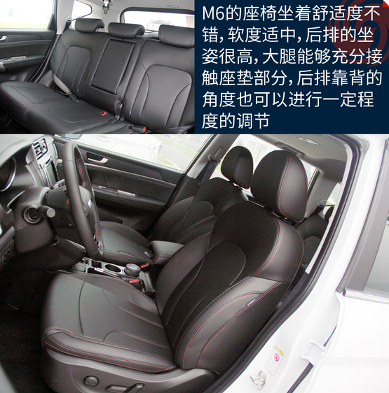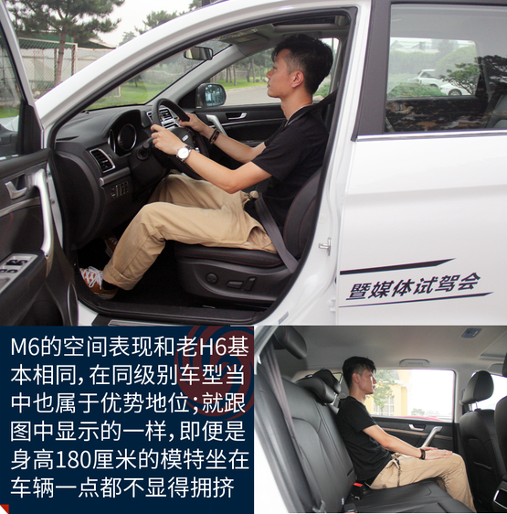 ????????M6的空間表現(xiàn)在同級別車型當(dāng)中屬于優(yōu)勢地位,主要原因就是內(nèi)部空間和H6基本沒區(qū)別。特別得說新車的座椅,很柔軟、舒服,包裹性也不錯。不過坐姿真的有點高,前排座椅調(diào)到最低后還是能看到整個機(jī)艙蓋,這樣倒是為了安全性;后排的座椅還要更高一些,有點類似劇院式的設(shè)計,給后排乘客減少了壓抑感。