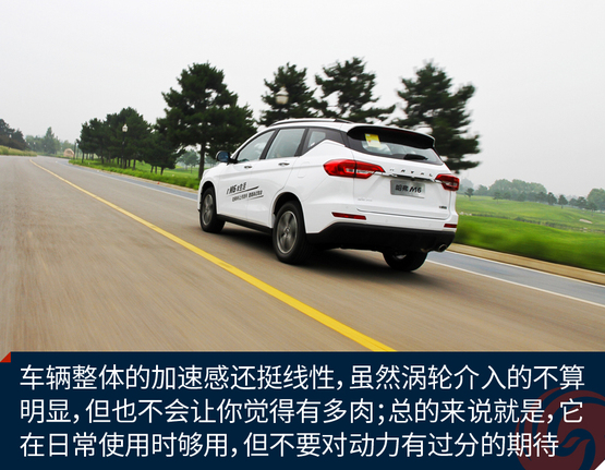????????M6使用的是前麥弗遜式+后雙橫臂式懸架,行程較長,調(diào)校也偏舒適,正常速度過彎兒的話,側(cè)傾并不會影響到舒適性。過彎處的側(cè)向傾斜度在可以接受的范圍之內(nèi),轉(zhuǎn)彎也比較的平順。