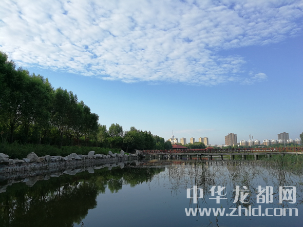 12月17日,天氣晴好,周口公園在藍天白云的映襯下顯得分外美麗。