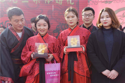 中華龍都網(wǎng)訊(周口報(bào)業(yè)全媒體記者 徐松 通訊員 胡恩來(lái) 文/圖)1月1日,鄲城縣文明辦、縣總工會(huì)、團(tuán)縣委、縣婦聯(lián),組織16對(duì)新人在鄲城世紀(jì)廣場(chǎng)共同舉辦主題為“丹城佳緣、緣定今生”集體婚禮,以此破除“天價(jià)彩禮”和奢侈浪費(fèi)陋習(xí),倡樹(shù)婚事簡(jiǎn)辦、勤儉節(jié)約新風(fēng)。