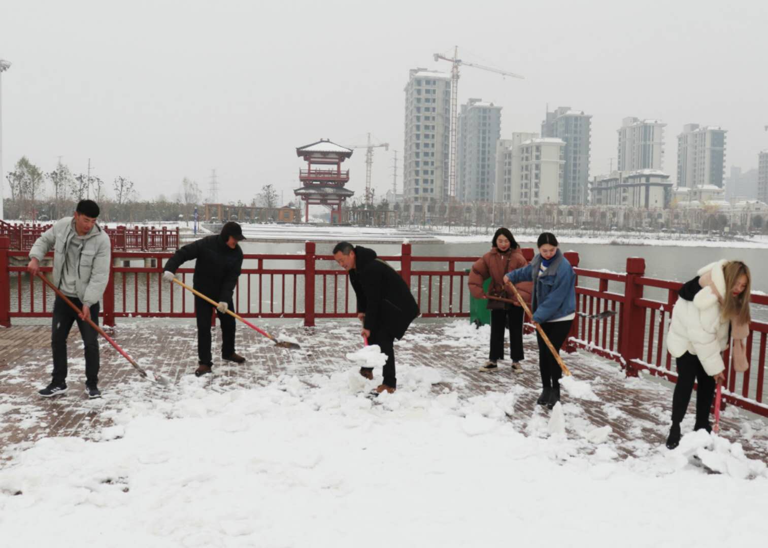 中華龍都網(wǎng)訊(周口報(bào)業(yè)全媒體記者馬治衛(wèi) 通訊員洪濤 傳保)1月7日,鹿邑縣市政園林中心全體人員與十余名志愿者一起到上清湖公園打掃積雪,方便群眾在上清湖游樂(lè)。