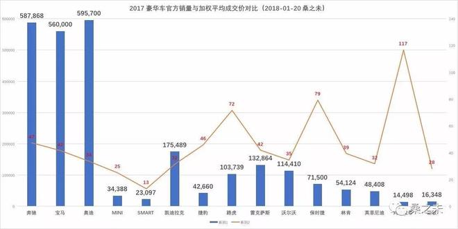 銷(xiāo)售的數(shù)量固然重要,但是銷(xiāo)售質(zhì)量也是評(píng)估銷(xiāo)售力不能忽視的重要指標(biāo)。衡量銷(xiāo)售質(zhì)量,“加權(quán)平均成交價(jià)”和“單車(chē)?yán)麧?rùn)”這兩個(gè)重要參數(shù),也許讓我們更直觀的看到車(chē)企的銷(xiāo)售能力與經(jīng)銷(xiāo)商單店經(jīng)營(yíng)質(zhì)量。這些更微觀的數(shù)據(jù)往往更能反映銷(xiāo)售公司及其經(jīng)銷(xiāo)商體系的銷(xiāo)售能力及水平?!凹訖?quán)平均成交價(jià)”反映車(chē)企的產(chǎn)品力與銷(xiāo)售公司的銷(xiāo)售能力,車(chē)企賣(mài)掉的車(chē)越多,單車(chē)價(jià)格越貴,品牌就越具有競(jìng)爭(zhēng)力,反之就需要考慮改進(jìn)產(chǎn)品,提升銷(xiāo)售管理能力。“單車(chē)?yán)麧?rùn)”指經(jīng)銷(xiāo)商銷(xiāo)售新車(chē)獲取的利潤(rùn),不含衍生利潤(rùn),一般在-4%-7%之間,如果單車(chē)?yán)麧?rùn)超過(guò)-2%,廠家需要考慮對(duì)經(jīng)銷(xiāo)商進(jìn)行補(bǔ)貼,如果利潤(rùn)超過(guò)7%,車(chē)企就會(huì)調(diào)整經(jīng)銷(xiāo)商浮動(dòng)返利。下面我們通過(guò)這兩個(gè)指標(biāo),來(lái)看哪些豪華車(chē)品牌在2017年表現(xiàn)更具實(shí)力。