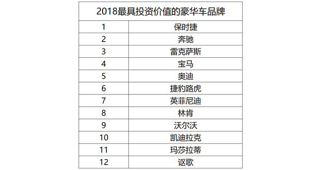 2018年經(jīng)銷(xiāo)商值得投入的品牌推薦保時(shí)捷、奔馳、雷克薩斯;具有增長(zhǎng)潛力的品牌推薦寶馬、奧迪、捷豹路虎;謹(jǐn)慎關(guān)注的品牌有瑪莎拉蒂、謳歌。