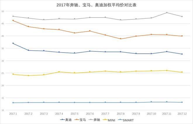 2017年全國(guó)社會(huì)消費(fèi)品零售總額中汽車(chē)類(lèi)消費(fèi)總額為42,221.9億元,增長(zhǎng)5.6%;12個(gè)豪華品牌車(chē)企,2017年新車(chē)銷(xiāo)售營(yíng)收達(dá)到1.1萬(wàn)億,占汽車(chē)類(lèi)消費(fèi)總額的26%;12個(gè)品牌的豪華車(chē)銷(xiāo)量以10.77%的市場(chǎng)份額,占26%的汽車(chē)消費(fèi)總額,凸顯豪華品牌車(chē)企在國(guó)內(nèi)汽車(chē)行業(yè)中的重要性。