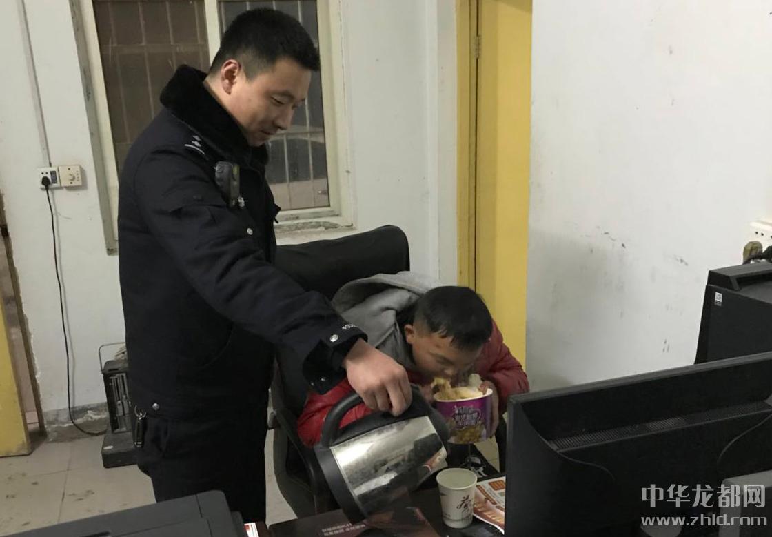 1月25日晚10時許,雪一直在下。扶溝縣公安局柴崗派出所接到群眾報警稱,在柴崗鄉(xiāng)前楊路段,一名20歲左右的男孩在路旁雪堆里坐著,疑似精神異常。接到報警后,值班民警郭晨航帶領(lǐng)輔警宋紹帥迅速趕到現(xiàn)場。發(fā)現(xiàn)路邊男孩衣著單薄,凍得瑟瑟發(fā)抖,已說不出話來。民警趕緊把男孩扶上車到派出所。民警先給男孩倒了一杯熱茶,然后詢問他家的情況。男孩只能進(jìn)行簡單的溝通,說不出自己的姓名和家庭住址,只說餓。民警一邊趕忙拿來泡面、火腿腸讓男孩吃,一邊到男孩經(jīng)過的路口調(diào)查走訪,并通過微信朋友圈發(fā)布尋找男孩親人的消息,并附上男孩的照片。