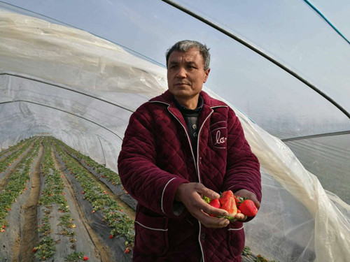 2月6日,“新征程新夢想”周口媒體新春走基層采訪團來到沈丘縣新安集鎮(zhèn)三大夫營行政村,記者在賈留功的草莓大棚里見到并采訪了他。