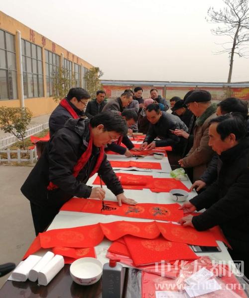 當(dāng)天,中國(guó)美協(xié)會(huì)員、河南省美協(xié)副主席李學(xué)峰,中國(guó)美協(xié)會(huì)員皮偉,中國(guó)書(shū)協(xié)會(huì)員徐青峰,淮陽(yáng)書(shū)協(xié)主席秦鴻偉等書(shū)法家加入到義寫(xiě)春聯(lián)的隊(duì)伍中,書(shū)寫(xiě)大紅春聯(lián),為全村廣大村民送上濃濃的新年祝福,構(gòu)成一道獨(dú)特的年俗文化風(fēng)景線。