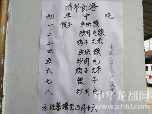 午飯時(shí),老人們井然有序地端著饅頭、大米粥、小酥肉等在餐廳內(nèi)就餐。兩個(gè)剛吃過(guò)飯的老人仔細(xì)查看貼在食堂門口的《春節(jié)食譜》,路過(guò)的一位老太太開(kāi)玩笑說(shuō)他們吃著碗里看著鍋里。李學(xué)告訴記者:“從正月初一到正月十五,敬老院的菜譜葷素搭配,每日三餐不重樣。5名炊事員一門心思想讓老人吃得香、吃得鮮、吃得好?!蓖瑫r(shí),記者發(fā)現(xiàn)在敬老院的前排房間前,兩名服務(wù)員正推著餐車一間挨著一間為行動(dòng)不便的老人們送水、送飯。