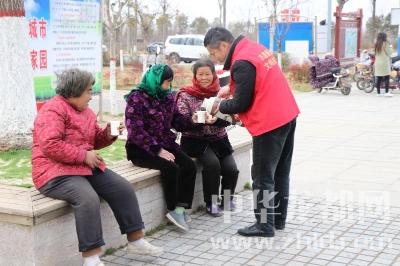 細(xì)心的志愿者們還為健身、散步、游玩的市民準(zhǔn)備了開水和杯子,為他們驅(qū)走寒意、溫暖雙手、滋潤心田。“俺孩兒在家也沒想著給我倒杯水喝啊,恁還大老遠(yuǎn)給我送來!”接過志愿者手中的開水,一位老人十分激動。