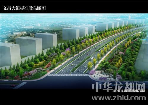 據(jù)東新區(qū)規(guī)劃建設(shè)環(huán)保局副局長楊帥兵介紹,此次施工時(shí)間從3月6日開始,預(yù)計(jì)6月20日結(jié)束。升級改造后的文昌大道(紅線加綠線)寬度為160米,斷面形式為中央6米綠化帶,中央綠化帶兩側(cè)各為寬度14米的快車道,快車道規(guī)劃為雙向八車道??燔嚨纼蓚?cè)各為寬度3米的機(jī)非分隔帶,機(jī)非分隔帶兩側(cè)為寬度5.5米的慢車道,慢車道兩側(cè)各為寬度4.5米的人行道。在人行道兩側(cè),就是寬度為50米的景觀綠化帶。快車道設(shè)計(jì)速度為50公里/小時(shí),道路設(shè)計(jì)使用年限為15年。