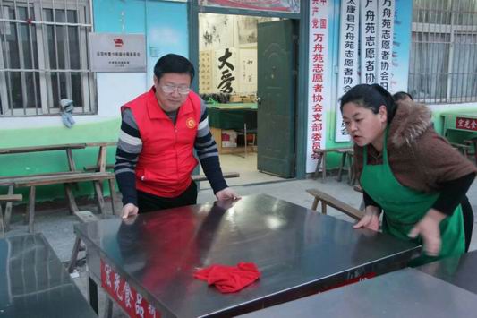 中華龍都網(wǎng)訊(周口報業(yè)全媒體記者 馬治衛(wèi) 通訊員 衡霞光)為弘揚志愿者精神,3月24日,縣直機關(guān)工委以張玉潔書記為首的黨員志愿服務(wù)隊早早來到愛心早餐現(xiàn)場,他們擺放桌凳,盛菜、盛湯,忙的不亦樂乎,6點準(zhǔn)時開飯,張玉潔帶頭把飯菜端到環(huán)衛(wèi)工人面前,作為黨員志愿者,她身先士卒、帥先垂范、受到環(huán)衛(wèi)工人的一致稱贊。