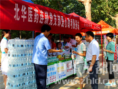 愛心助考活動(dòng)現(xiàn)場(chǎng),西華縣真愛醫(yī)院黨支部設(shè)立的“黨旗引領(lǐng)、護(hù)航高考”的大紅愛心助考條幅分外惹眼,黨員志愿者們免費(fèi)為考生提供藿香正氣水、風(fēng)油精、退燒藥等,并有醫(yī)護(hù)人員現(xiàn)場(chǎng)提供急救服務(wù)。在西華縣恒生醫(yī)院黨支部愛心助考點(diǎn)前,3名醫(yī)護(hù)人員正在免費(fèi)為考生及家長(zhǎng)提供風(fēng)油精、清涼油、仁丹、藿香正氣水等防暑降溫藥品和急救藥品,還有擔(dān)架、120急救車輛等。西華縣北華醫(yī)藥黨支部愛心助考服務(wù)站的黨員志愿者,正在向考生免費(fèi)提供防暑降溫藥、感冒發(fā)燒藥、拉肚子藥等藥品。黨員志愿者愛心企業(yè)代表宋女士說:“在高考期間,我們?yōu)榭忌凹议L(zhǎng)免費(fèi)提供礦泉水、芭蕉扇、清涼油等多項(xiàng)服務(wù),除了愛心,更多的是一份責(zé)任和使命?!?/p>