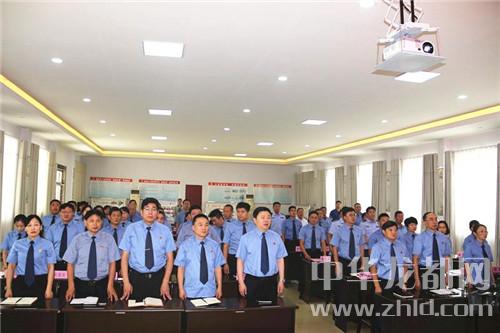 最后,全體干警面對(duì)黨旗進(jìn)行了莊嚴(yán)的宣誓,鏗鏘的誓言堅(jiān)定了干警們永遠(yuǎn)跟黨走的信念!