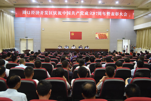 田林在開發(fā)區(qū)慶祝中國共產黨成立97周年暨表彰先進大會上強調