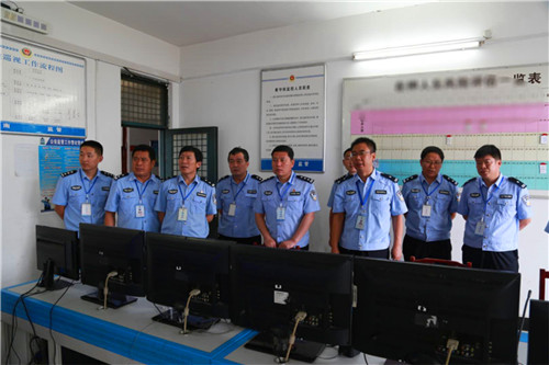 陳鳳祥在看守所監(jiān)管大隊長郭景靈、教導員譚林生的陪同下,參加了集體交接班,并先后來到收押大廳、監(jiān)控室、巡視道、監(jiān)區(qū)、監(jiān)控中心等重點部位進行了實地查看,要求全體監(jiān)所民警嚴格落實各項管理工作制度,全力保障監(jiān)所安全。