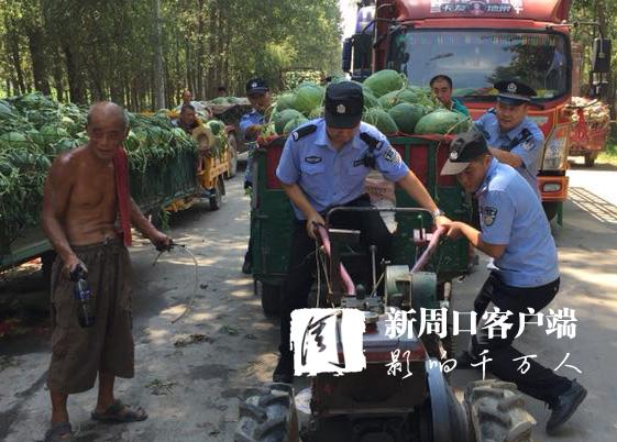 三伏天里,西瓜是不可或缺的消暑水果,但一些瓜農(nóng)在出售西瓜時卻往往忽視了交通秩序,因車輛停放不當造成交通擁堵。扶溝縣公安局江村派出所民警冒著酷暑,加強轄區(qū)西瓜市場巡邏,及時疏導擁堵路段交通。圖為7月18日,民警正在疏導西瓜市場擁堵車輛。