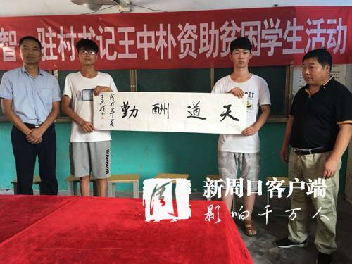 扶貧先扶智,為弘揚(yáng)“扶貧濟(jì)困,崇德向善”的傳統(tǒng)美德,使貧困學(xué)生順利完成學(xué)業(yè),實(shí)現(xiàn)自己的理想,王忠樸主動與虎崗鄉(xiāng)中心校聯(lián)系,為14名考上鄲城一高的貧困學(xué)生每人資助500元現(xiàn)金和一幅自己親自為受資助的14名貧困學(xué)子親筆題字,激勵(lì)他們奮發(fā)向上,早日成才。