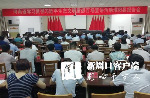 縣委書記馬明超主持報告會并講話??h領(lǐng)導(dǎo)王毅、岳新坦、馬自成、黨魁等在家的四個班子領(lǐng)導(dǎo)同廣大黨員干部共同聆聽輔導(dǎo)報告。丁素以“深入學(xué)習(xí)貫徹習(xí)近平生態(tài)文明思想、建設(shè)美麗中國”為題,深入淺出,旁征博引,生動、系統(tǒng)地闡述了習(xí)近平生態(tài)文明思想和全國生態(tài)環(huán)境保護大會精神的重大意義、豐富內(nèi)涵和精神實質(zhì),對淮陽貫徹落實習(xí)近平生態(tài)文明思想、堅決打好打贏環(huán)境污染防治攻堅戰(zhàn)指明了方向。