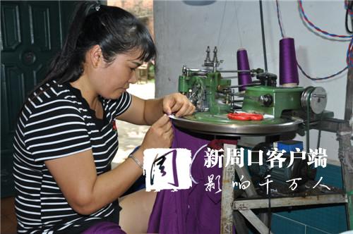 今年以來,商水縣實施精準扶貧,大力發(fā)展服裝代加工,讓不能外出打工的貧困群眾從工廠領回設備和原材料在家加工,廠方上門進行技術指導并回收成品。圖為該縣巴村鎮(zhèn)董村村民使用廠方提供的毛衣編織機在家加工羊毛衫。
