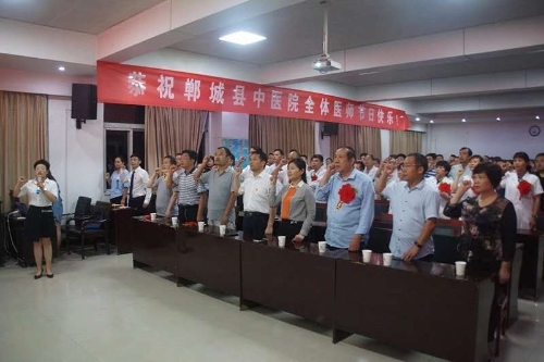 在鄲城縣中醫(yī)院醫(yī)務(wù)部主任肖儉的帶領(lǐng)下,中醫(yī)院的醫(yī)師們莊重地舉起右拳,莊嚴(yán)地宣誓,決心嚴(yán)格遵守誓言,時(shí)刻以中國(guó)醫(yī)師宣言為激勵(lì),以自身的實(shí)際行動(dòng)踐行誓言,忠誠(chéng)于醫(yī)療衛(wèi)生事業(yè),全心全意為人民健康服務(wù),恪守醫(yī)德、團(tuán)結(jié)合作、精益求精,做人類(lèi)健康的衛(wèi)士。