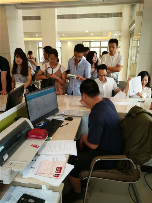 當日上午7時許,位于東新區(qū)光明路附近的周口市行政服務(wù)中心大廳內(nèi)已經(jīng)有不少登記領(lǐng)證的新人排起了長隊,在工作人員的引導(dǎo)下填資料、按手印、簽字確認、領(lǐng)取結(jié)婚證,整個大廳洋溢著幸福甜蜜的氣息?!盀榱藨?yīng)對今天的結(jié)婚登記小高峰,我們提前對機器設(shè)備和平臺進行了檢查維護,對結(jié)婚登記表格進行了清點和補充,增設(shè)窗口,流水線作業(yè),中午不休息,下午也會等到最后一對新人領(lǐng)到結(jié)婚證才下班,確保當天全部登記,盡力滿足新人們在‘七夕’如愿約定終身?!被橐龅怯浱幑ぷ魅藛T說。