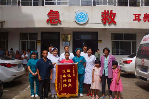 8月20日上午,伴著歡快的嗩吶聲,鄲城縣張完鄉(xiāng)的王先生和妻子、女兒一起懷著激動(dòng)的心情,帶著一面印有“醫(yī)德高尚 醫(yī)術(shù)精湛”的錦旗來(lái)到鄲城縣中醫(yī)院,把錦旗送到該院急診科醫(yī)護(hù)人員手中,算是了結(jié)了一樁讓他和家人牽掛了兩年的“心事”。