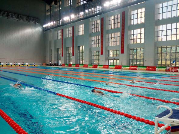 據(jù)了解,市游泳館占地面積4.4萬平方米,總建筑面積24398.69平方米,地上建筑面積20846.08平方米,地下建筑面積3552.61平方米,地上三層、地下一層,可容納觀眾1200人。市游泳館內(nèi)共有兩個大的泳池,一個比賽用,長50米、寬25米,規(guī)格達到奧運會游泳比賽泳池標(biāo)準(zhǔn),比賽時水深將達到2米;另外一個練習(xí)用,供參賽選手熱身,水深1.2米。