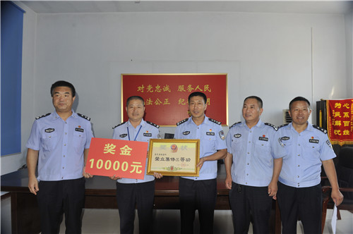 殷殷勉勵鼓士氣,濃濃關(guān)愛暖警心。8月22日,鹿邑縣公安局政委任金瑞帶領(lǐng)政工部門負(fù)責(zé)人深入基層一線,為榮立集體三等功的鹿邑縣拘留所和榮獲個人嘉獎的任集派出所指導(dǎo)員姚坤送去獎?wù)隆⒆C書和獎金。