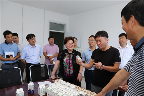 8月27日上午,河南花花牛乳業(yè)集團(tuán)董事長(zhǎng)關(guān)曉彥一行三人到扶溝縣寶樂(lè)奶業(yè)考察。扶溝縣長(zhǎng)張穎波,縣委常委、縣委辦公室主任朱良杰,縣委常委趙紅亮等陪同考察。