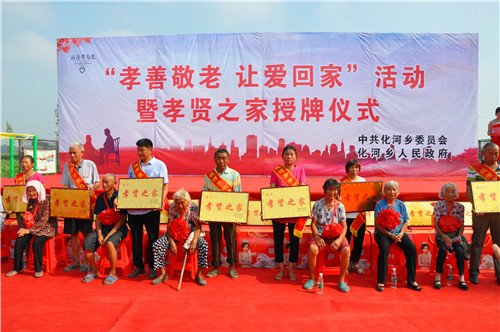 8月30日上午,化河鄉(xiāng)“孝善敬老 讓愛回家”活動(dòng)暨孝賢之家授牌儀式在該鄉(xiāng)高老村文化廣場舉行??h委常委、統(tǒng)戰(zhàn)部長李遠(yuǎn)富、副縣長何海中、縣工會(huì)主席盧紅兵應(yīng)邀出席?;余l(xiāng)黨政班子和近千群眾參加了活動(dòng)儀式。