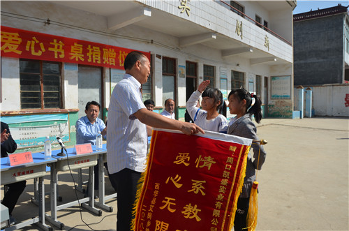 10月10日上午,西華縣艾崗鄉(xiāng)鐵爐小學(xué)內(nèi)熱鬧非凡,由愛心企業(yè)家方凱為該校捐贈的150套嶄新課桌陸續(xù)運(yùn)達(dá),這讓全校師生歡呼雀躍??h委常委、宣傳部長楊鳳臣出席捐贈儀式。