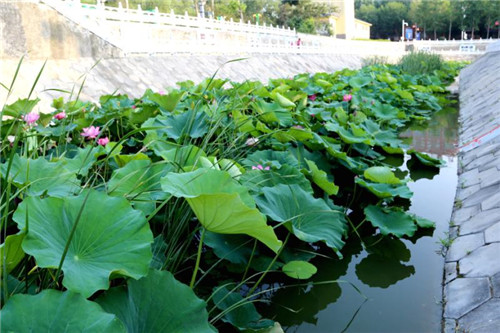 改善水質(zhì),美化環(huán)境,是當初實施“五河共治”的最終目的。王力說,為實現(xiàn)這一目標,確?!拔搴印焙訒乘?,美景常在,縣“五河辦”在廣泛宣傳引導群眾愛鹿邑、愛“五河”,嚴禁污水,垃圾入河的同時,還積極創(chuàng)造條件克服施工困難,采取科學抽排、清淤除壩、提升水位,增強水循環(huán)和小閘調(diào)控,生化處理,放水養(yǎng)魚等措施加強水質(zhì)提升;先后在“五河”建設人工生態(tài)浮島近1萬平方米,種植水生美人蕉、睡蓮、梭魚草、荷花、常綠鳶尾、蒲草、粉綠狐尾藻、香菇草等多種挺水植物和浮水植物,既有效改善了水質(zhì),又提升了景觀效果。兩多年來,“五河人”按照縣委要求建閘門、堵漏污、修泵站、清淤泥、除壩體、掏橋眼、通管網(wǎng)、種蒲草、植綠種樹、保亮化,使“五河共治”成果在精細管護中明顯改善提升。