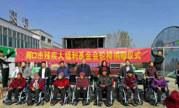11月9日,周口市殘疾人福利基金會在鄲城縣巴集鄉(xiāng)尚德養(yǎng)老院為鄲城縣殘疾人舉行百輛輪椅捐贈發(fā)放儀式。周口市殘疾人福利基金會主任劉莊、鄲城縣殘聯(lián)理事長楊瑞林、錢店鎮(zhèn)鎮(zhèn)長朱子鳳等參加了捐贈儀式。
