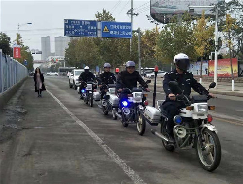入冬以來(lái),鄲城縣進(jìn)一步加強(qiáng)治安防控工作,提高快速反應(yīng)能力,強(qiáng)化震懾效果,提高見(jiàn)警率和管事率,確保巡防無(wú)死角,有效預(yù)防和打擊各類違法犯罪活動(dòng),廣大人民群眾的安全感、滿意度明顯提升。圖為11月14日上午,鄲城縣巡防大隊(duì)摩托車隊(duì)在城區(qū)主街道巡邏。記者 盧好亮 攝