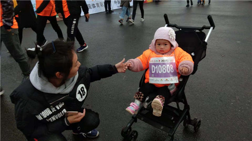 “重在參與,讓寶寶也感受一下馬拉松的比賽的氣氛,目的還是帶孩子活動活動,從小養(yǎng)成一個運(yùn)動的好習(xí)慣?!币σ壮康膵寢屵@樣介紹。