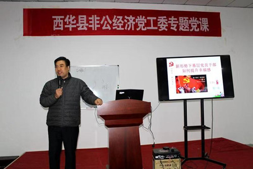 11月17日,西華縣非公黨工委邀請清華大學(xué)珠海教育中心EMBA國學(xué)講師徐一農(nóng)先生,為全縣百余名非公企業(yè)黨員集中上了一堂生動的黨課。縣委組織部、縣非公黨工委有關(guān)領(lǐng)導(dǎo)、酷農(nóng)航空、縣電商產(chǎn)業(yè)園、遠(yuǎn)大鍋爐等40余家非公企業(yè)、個私協(xié)會黨支部參加了集中黨課。