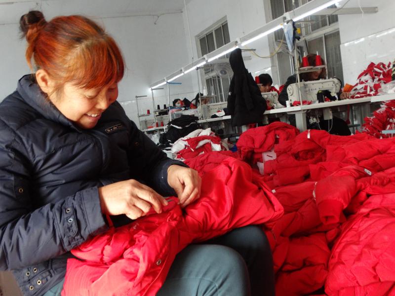 近年來,沈丘縣在打響脫貧攻堅(jiān)戰(zhàn)和鞏固提升脫貧攻堅(jiān)成果工作中,大力發(fā)展家庭手工業(yè),帶動(dòng)全縣5000余名留守婦女家門口就業(yè),年人均增收2萬元。左圖為11月19日,周營鎮(zhèn)馬營村留守婦女高英在一個(gè)兒童服裝加工點(diǎn)忙著剪線頭。②5 謝辛凌 攝