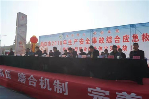 11月23日上午,周口市大型商業(yè)綜合體火災(zāi)事故應(yīng)急救援綜合演練活動(dòng)在淮陽縣天鴻世貿(mào)商場(chǎng)舉行。市政府副秘書長(zhǎng)馮干敏,市安委會(huì)副主任、安監(jiān)局局長(zhǎng)胡恩勇,市消防支隊(duì)副支隊(duì)長(zhǎng)李華兵,淮陽縣委書記馬明超,縣長(zhǎng)王毅,以及各縣(市)區(qū)主管安全工作的政府領(lǐng)導(dǎo)出席演練觀摩活動(dòng)。淮陽縣政府應(yīng)急辦、消防大隊(duì)、安監(jiān)局、公安局、衛(wèi)計(jì)委、環(huán)保局、住建局、天鴻世貿(mào)有限公司等20余家單位300余人參與演練活動(dòng)。