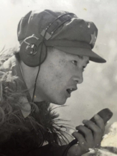 這時候,反撲的敵人越來越近了,蔣慶泉向指揮部的兩名話務戰(zhàn)士谷德泰和陸洪坤報告了這一情況??粗绯彼惚平臄橙?,蔣慶泉拼盡全力,沖著步話機嘶吼:“別廢話!向我所在的碉堡頂開炮!”。在陣地暗堡中,幸存的戰(zhàn)士緊緊圍在蔣慶泉身邊,以保護他向我炮兵指揮部通報目標的位置。