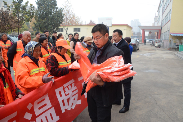 近日寒流來襲,氣溫驟降,連續(xù)的低溫降雨天氣讓人感受到了冬天的寒冷,為了確??h城區(qū)環(huán)境衛(wèi)生干凈整潔,廣大環(huán)衛(wèi)工人們始終堅(jiān)持冒嚴(yán)寒每天起早貪黑打掃城區(qū)衛(wèi)生,默默無聞堅(jiān)守在工作一線。12月3日,西華縣媧城商會(huì)會(huì)長(zhǎng)黃鳳芝攜手愛心企業(yè)山西汾酒集團(tuán)代理商宋二領(lǐng)來到城管局向環(huán)衛(wèi)工人捐贈(zèng)一批環(huán)衛(wèi)保潔防寒服,在寒冷冬天為堅(jiān)守縣城區(qū)保潔一線的每位環(huán)衛(wèi)工人送去溫暖。