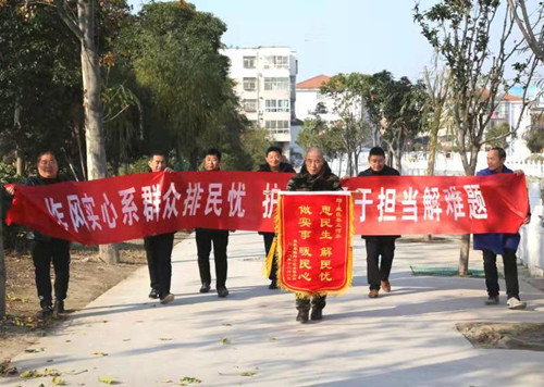 12月9日,來自鹿邑徐小橋社區(qū)的居民將一面繡有“思民生 解民憂 做實事 暖民心”的錦旗和"作風實心系群眾排民憂 ,護五河勇于擔當解難題"條幅送到鹿邑縣五河辦王力主任手中,感謝他們破解困擾居民多年的“內澇”難題。